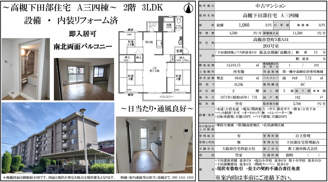 高槻市 中古マンション > 高槻下田部住宅A三四棟