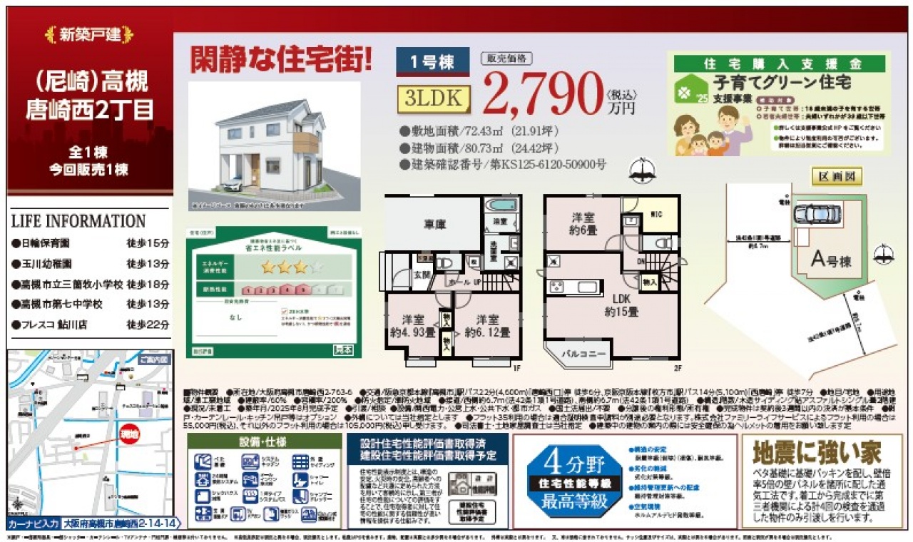 高槻市 中古マンション > 高槻市 唐崎西2丁目 新築一戸建て